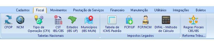Essa reorganização facilita a navegação e centraliza toda a configuração fiscal em um único ambiente.