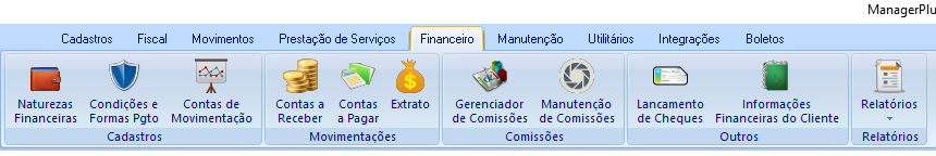 foram movidos para o menu Financeiro, onde se encaixam melhor dentro do fluxo de trabalho dos usuários.