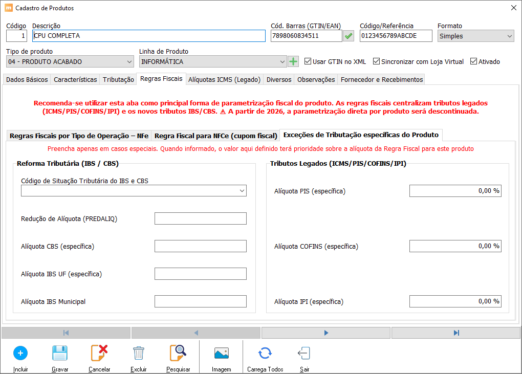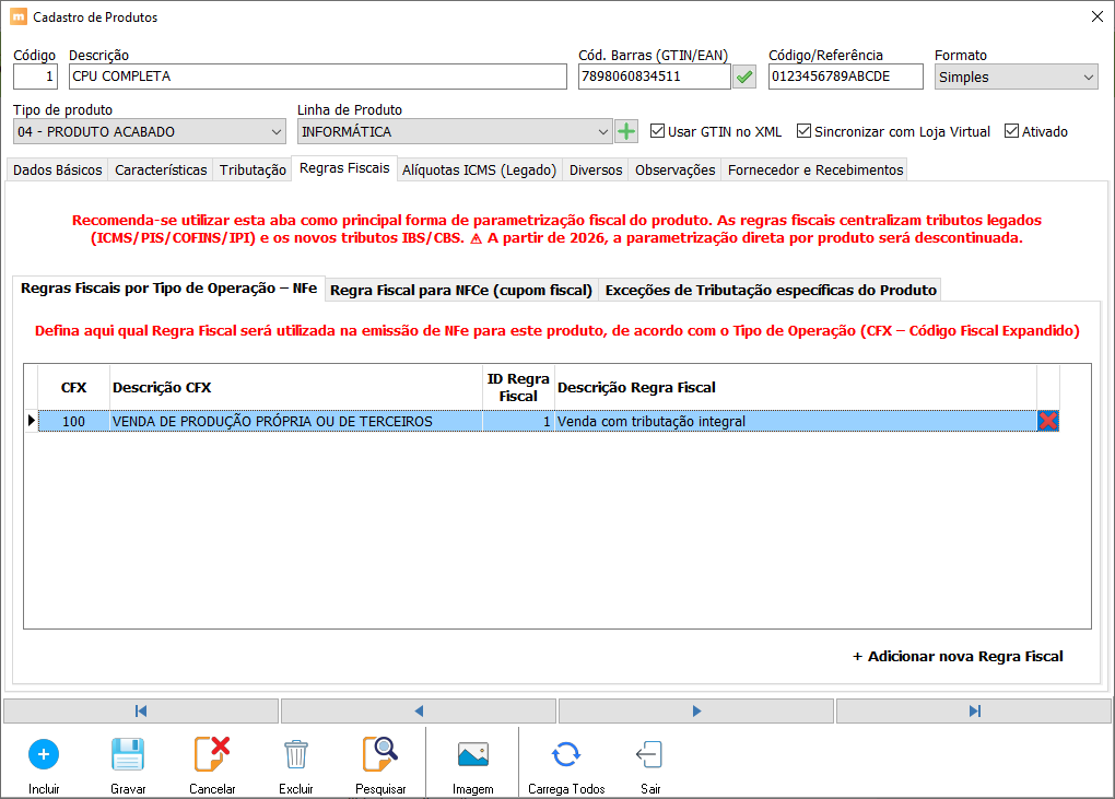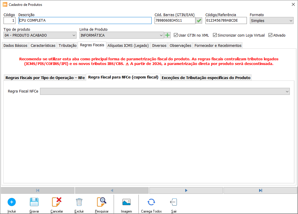 A partir desta versão, a tributação deixa de ser configurada diretamente no produto e passa a ser centralizada no módulo de Regras Fiscais — garantindo padronização, menor risco de erros e total alinhamento à Reforma Tributária.