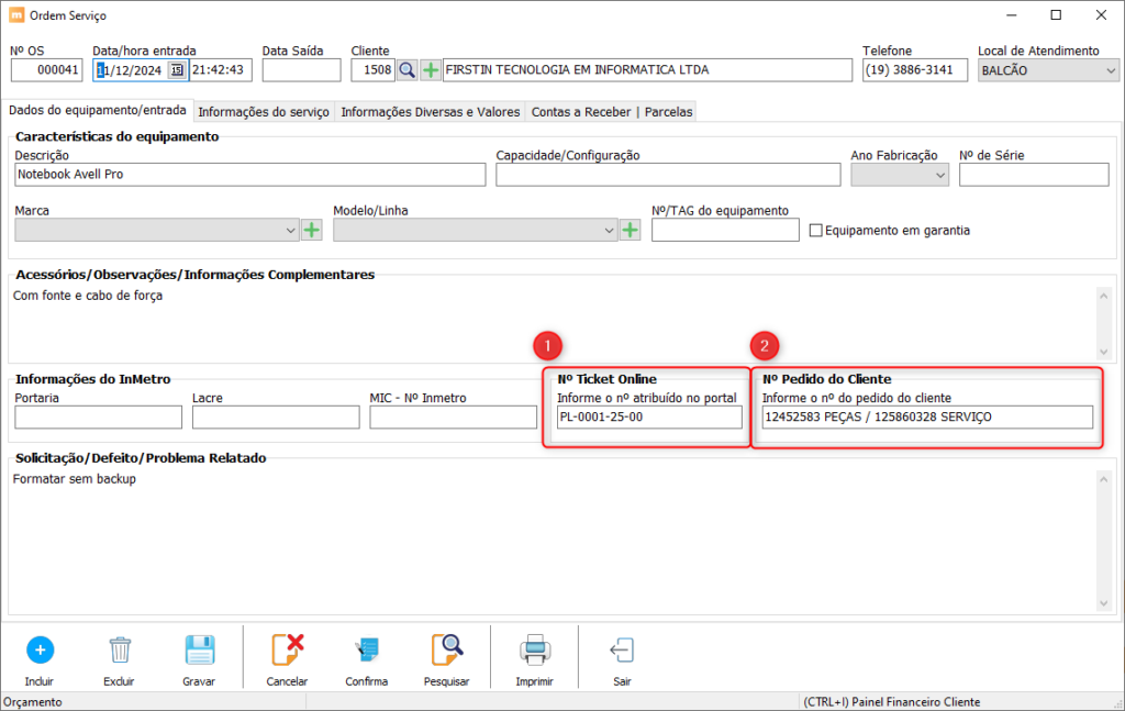 • 🔧 Ordem de Serviço: novos campos e filtros para integrar ticket online e pedido do cliente.